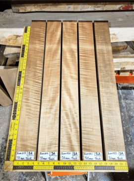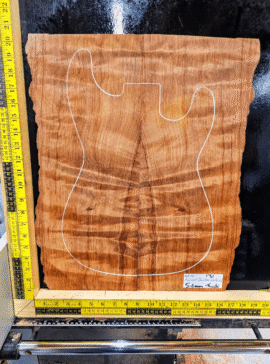 Quilted Maple, Flame Maple and more – Bookmatched Guitar tops See our range of available beautiful Maple bookmatched Guitar Body Blanks. Quilted Maple, Flame Maple and more wood for guitar bodies and tops available. We often carry rare to find as quarter sawn cuts of these beautiful guitar tops and body blanks. The quarter sawn cut gives distinct growth ring patterns seen on these sets. These sets will look seriously beautiful left natural, or they would be absolutely perfect to use as a canvas for colour staining. When these tops are lacquered, or stained and lacquered then they will really come to life and the quilted figuring will take on that really sought-after holographic effect. We carry maple in all colours, from white all the way through, to slabs and blanks with darker areas on the wood for a different effect. All of our Maple sets, body blanks and tops are fantastic quality materials, and will be perfect to use for high-end guitar and bass projects. Please view all pictures taken from different angles to help show how the grain patterns move and flip from different angles. Global Shipping available. Professionally dried and ready to use. Check out our FAQs…